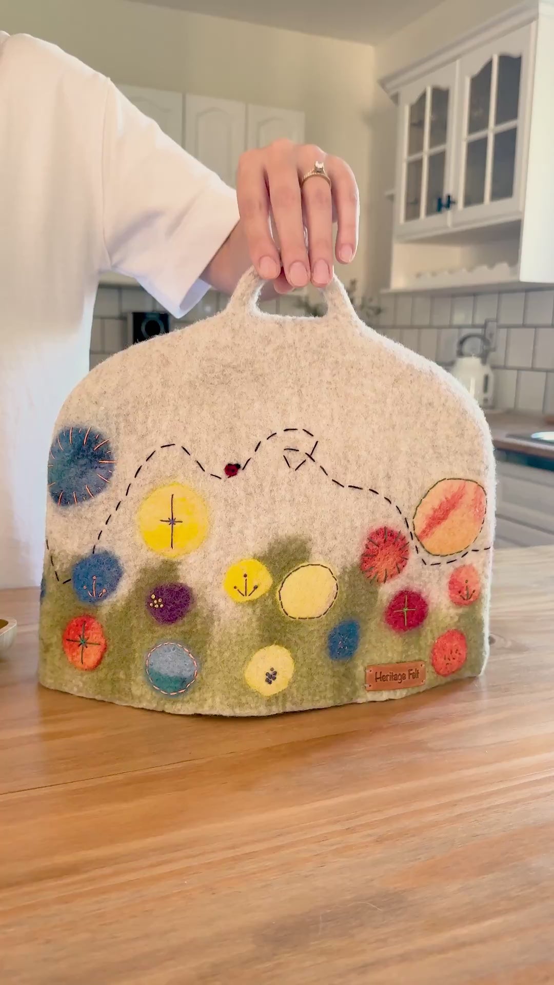 The merino wool provides excellent insulation to keep your tea warm, while the detailed embroidery adds texture and charm to your kitchen or table. Perfect for nature lovers, this Wildflower Tea Cozy combines warmth, elegance, and artistry, making every tea session a cozy and delightful experience.