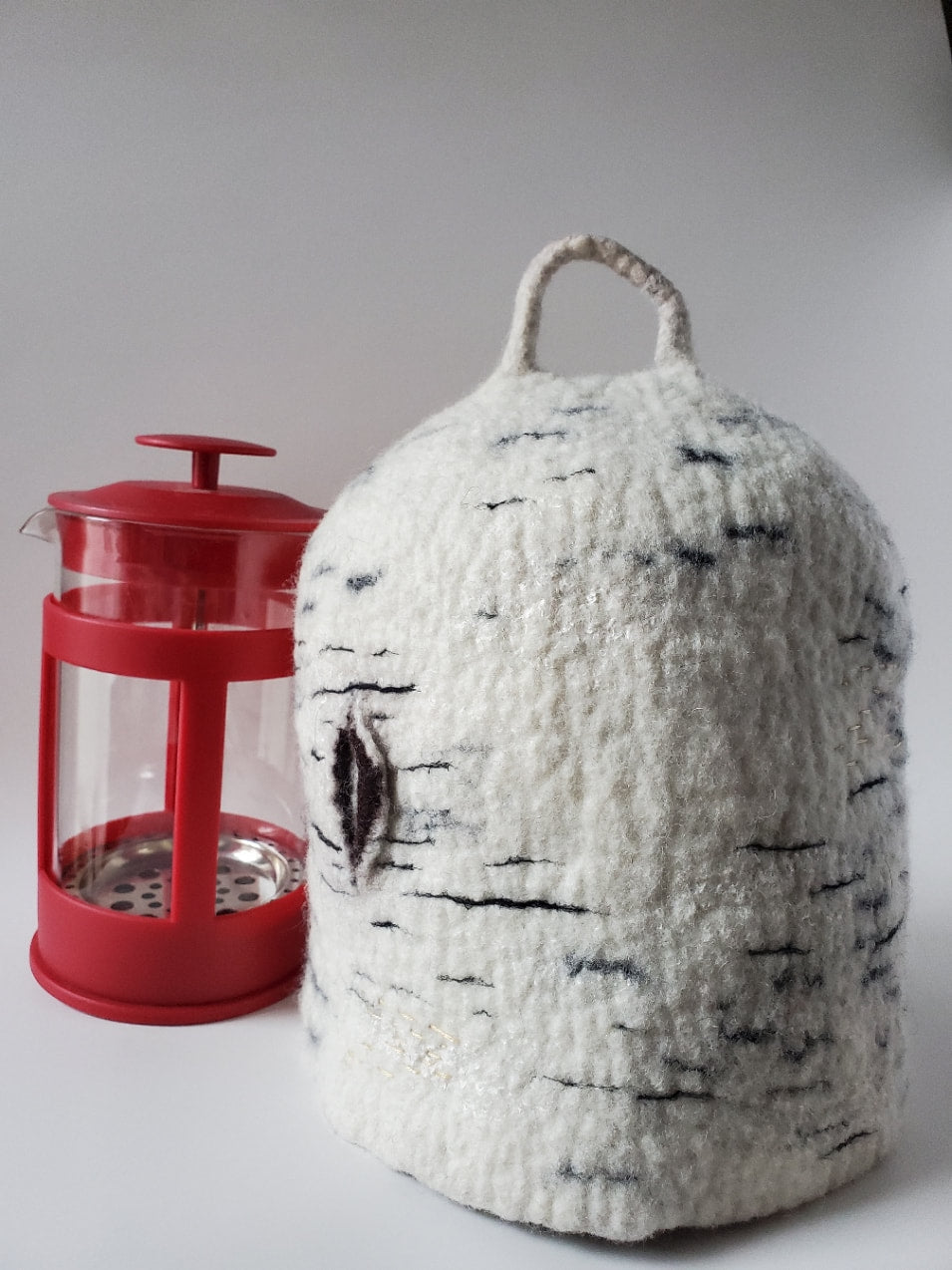 Keep your coffee hot and stylish with our Birch Bark French Press Cozy, designed to insulate and add charm to your coffee routine. Crafted from soft merino wool and silk, this cozy features a beautiful birch bark design, bringing a touch of nature to your kitchen. The natural texture mimics the look of birch bark, while the materials offer excellent heat retention to keep your coffee warm for longer.