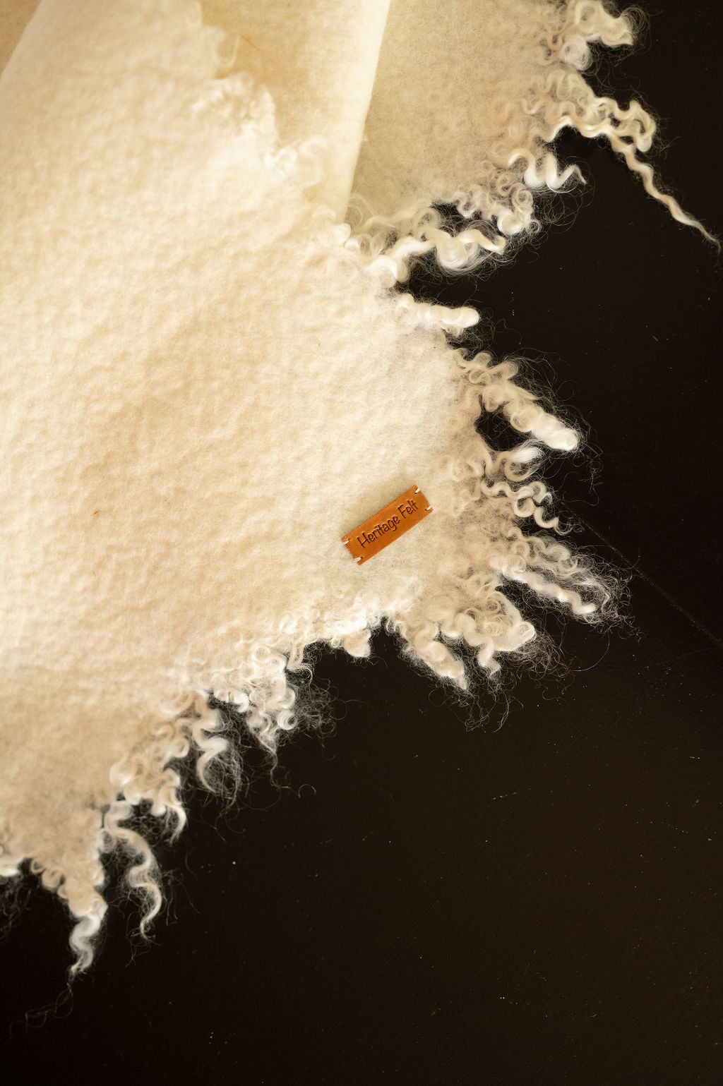 Bring rustic elegance to your dining table with our Cream-Colored Table Runner, crafted from luxurious, natural Ontario Dorset wool. The soft cream base, made from locally sourced wool, provides a rich, textured foundation, while accents of Wensleydale sheep curls add a touch of unique charm and natural beauty.