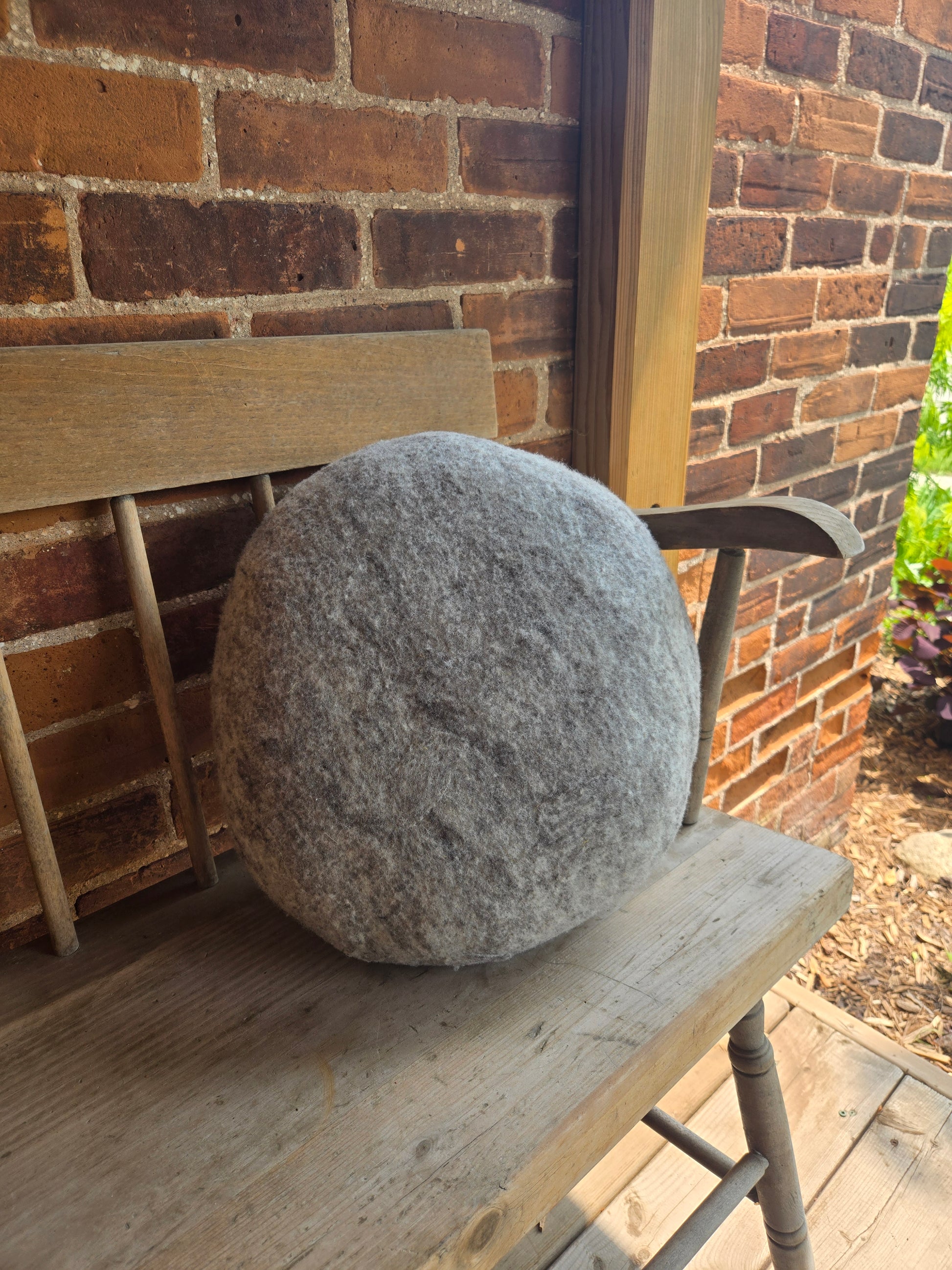 Introducing our Felted River Rock Pillow – a charming blend of nature and artistry for your home. Handcrafted with meticulous care, this unique pillow mimics the rugged beauty of a natural rock while offering the plush comfort of felted wool. Its textured surface and earthy tones create a striking visual contrast that adds a touch of rustic elegance to any space.